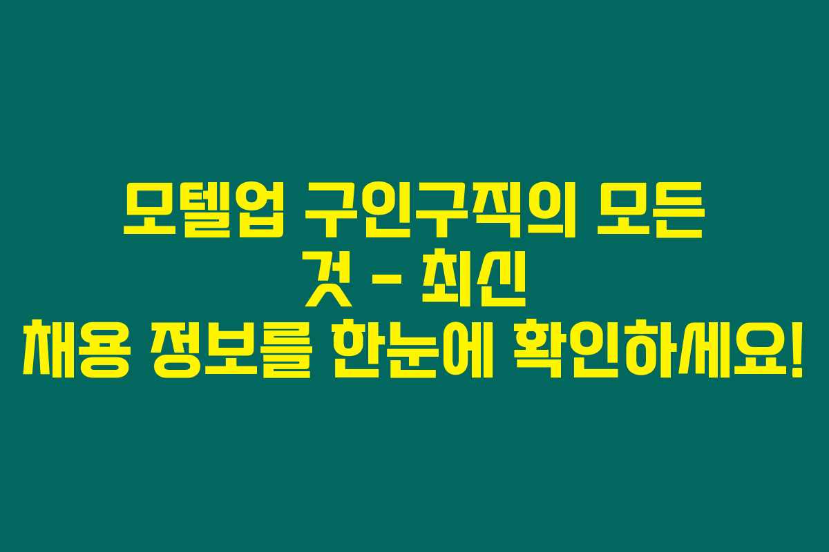 모텔업 구인구직, 다양한 일자리와 전문 정보를 궁금해하는 분들께 이 글이 유익하길 바라며, 앞으로도 취업 성공 이루시길 응원합니다!
