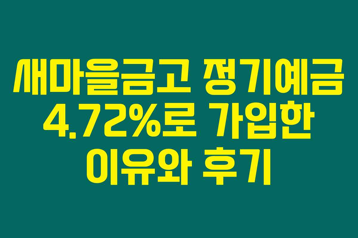 새마을금고 정기예금에 4.72% 이율로 가입한 경험을 공유합니다. 이 글을 통해 정기예금의 이자율, 가입 절차와 개인적인 후기를 간단히 나누고자 해요. 새마을금고의 정기예금이 과연 어떤 장점이 있을까요? 아래를 읽어보시면 더욱 깊이 있는 정보를 알 수 있습니다.