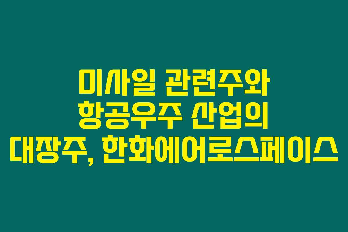 미사일 관련주 중에서 주목할 만한 종목들을 소개합니다. 특히 한화에어로스페이스는 방산 분야뿐만 아니라 우주 산업에서도 핵심적인 역할을 하고 있습니다.