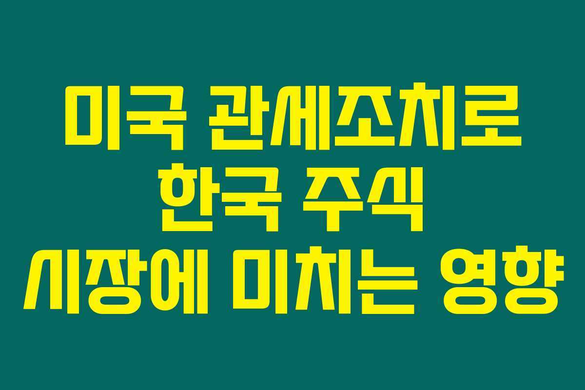 미국의 관세조치가 한국의 주식 시장에 미치는 영향과 주목해야 할 기업들을 소개합니다. 이를 통해 어떻게 주식 투자에 활용할 수 있는지에 대한 통찰을 제공합니다. 아래를 읽어보시면, 관세가 기업에 미치는 다양한 리스크와 기회를 쉽게 이해할 수 있을 것입니다.