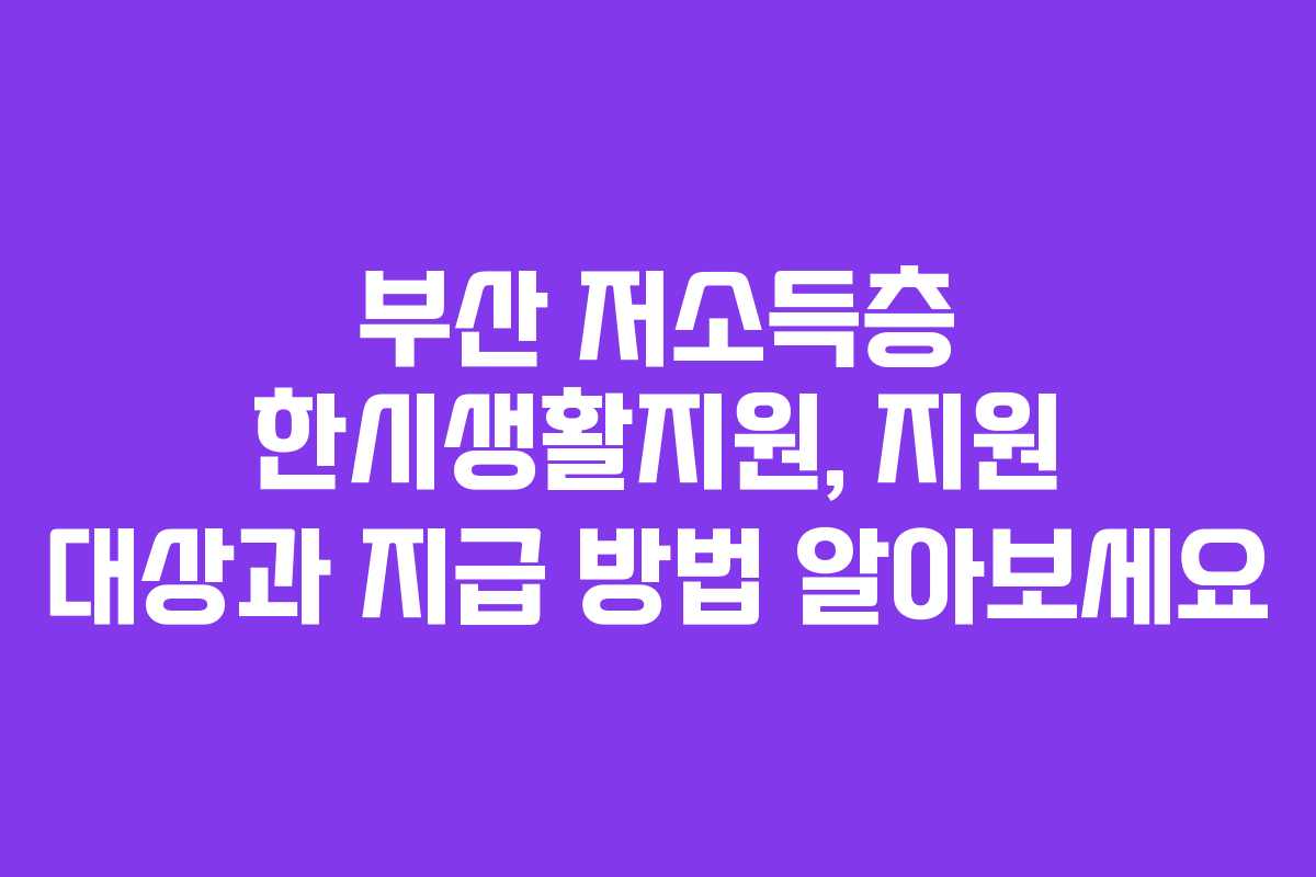 - 부산 저소득층 한시생활지원은 저소득 가구를 위한 긴급 재정 지원으로, 대상 여부에 따라 차등 지급됩니다.