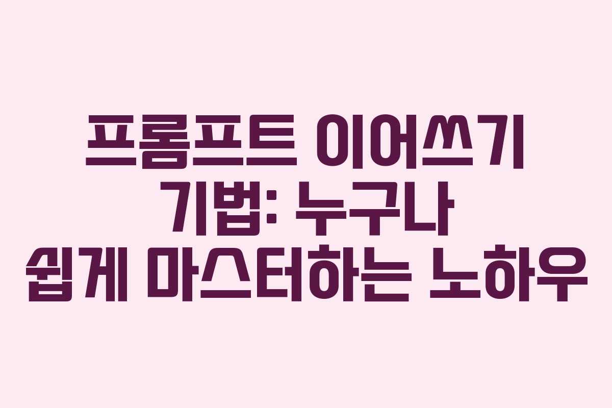 아래를 읽어보시면 프롬프트 이어쓰기 기법의 핵심 원리와 실전 활용법을 한 번에 익혀, 초보도 바로 적용 가능하고 수익 전환까지 염두에 둔 글쓰기 노하우를 얻을 수 있습니다
