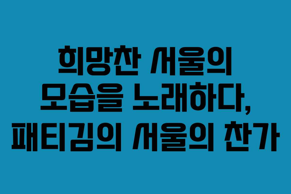 아래를 읽어보시면 1969년 발표의 배경과 패티김의 서울의 찬가가 오늘날 서울의 문화에 남긴 흔적을 따라가며 도시의 정서를 되짚어 볼 수 있습니다