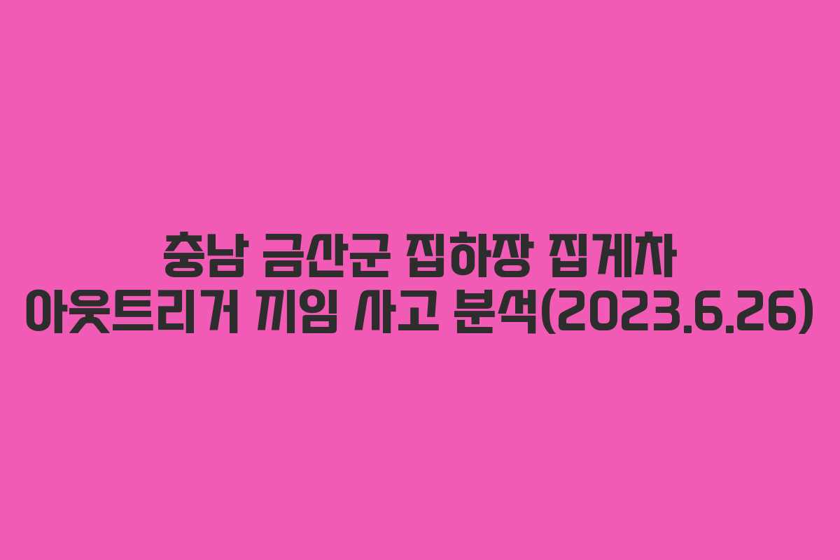2023년 6월 26일 이른 새벽 충남 금산군의 한 집하장에서 발생한 사고로, 집게차 운전자가 아웃트리거를 작동하는 과정에서 기둥과의 간섭으로 끼임 피해를 입었습니다.