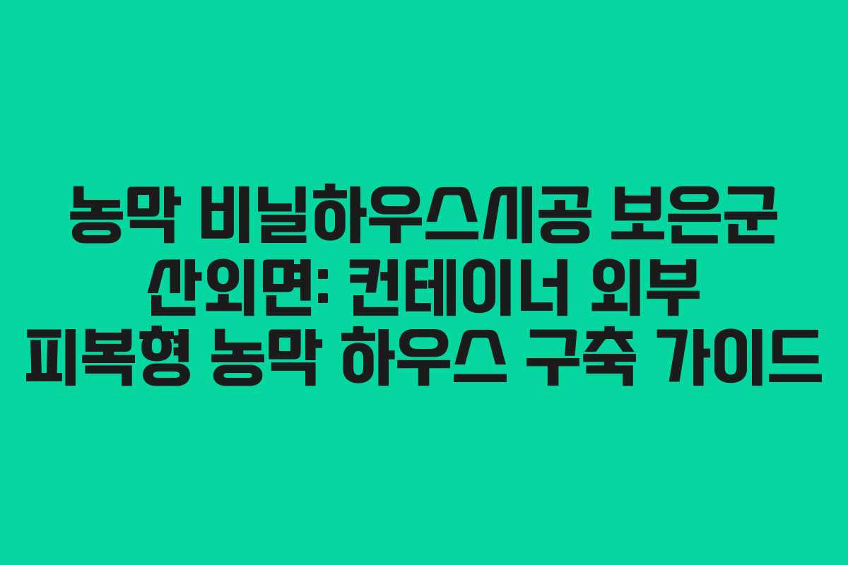농막 비닐하우스시공 보은군 산외면: 컨테이너 외부 피복형 농막 하우스 구축 가이드