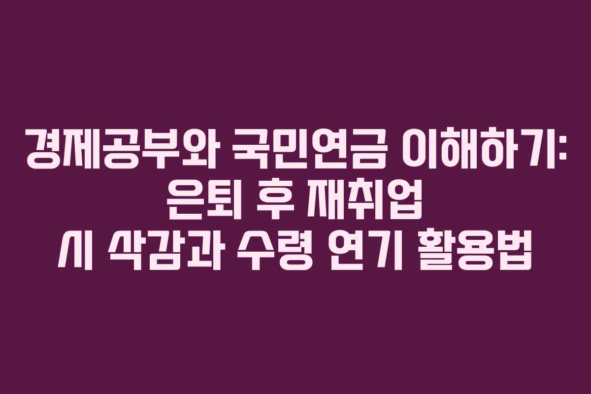 아래를 읽어보시면 국민연금의 기본 원리와 재취업으로 인한 삭감의 작동 원리, 수령 연기를 활용한 노후 소득 관리 방법, 그리고 연기연금을 신청하는 절차를 한눈에 파악할 수 있습니다.