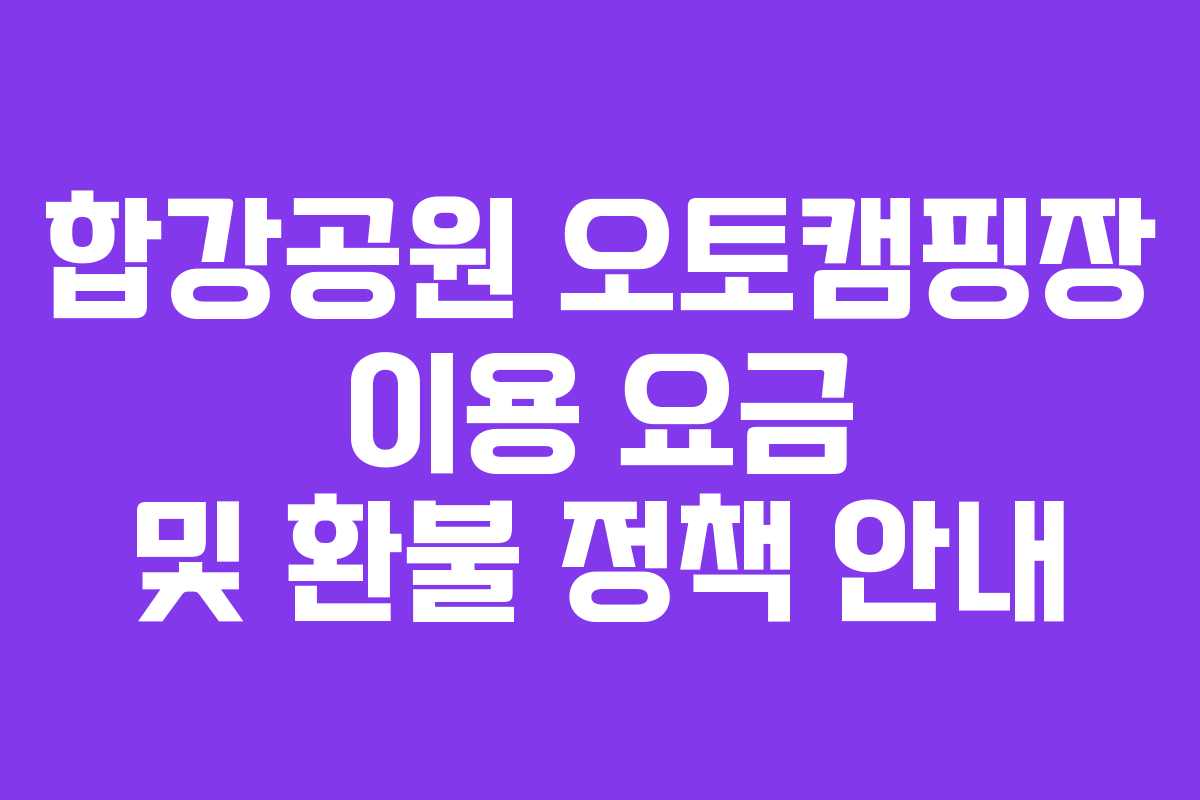 캠핑을 사랑하는 여러분, 합강공원 오토캠핑장에 대한 요금제와 환불 정책을 자세히 알아보겠습니다. 이 정보는 예약 전에 필수적으로 확인해야 할 내용입니다.
