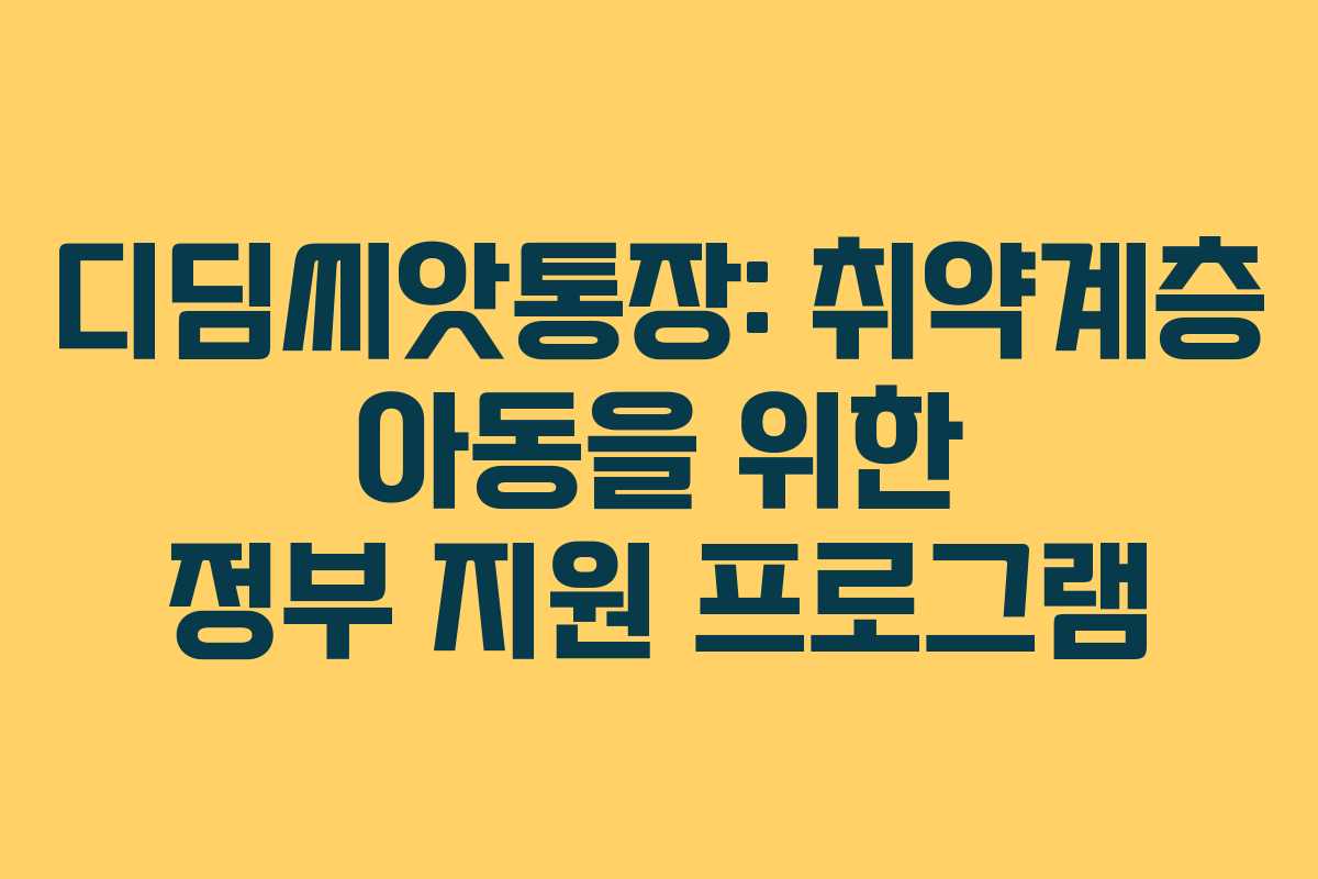 디딤씨앗통장은 취약계층 아이들의 미래를 위해 정부가 지원하는 금융 프로그램으로, 아동이나 보호자가 적립하면 정부가 추가로 지원금을 매칭하여 제공합니다. 이 제도는 아동들이 학자금, 창업비용, 주거비용 등을 마련하는 데 도움을 줍니다.