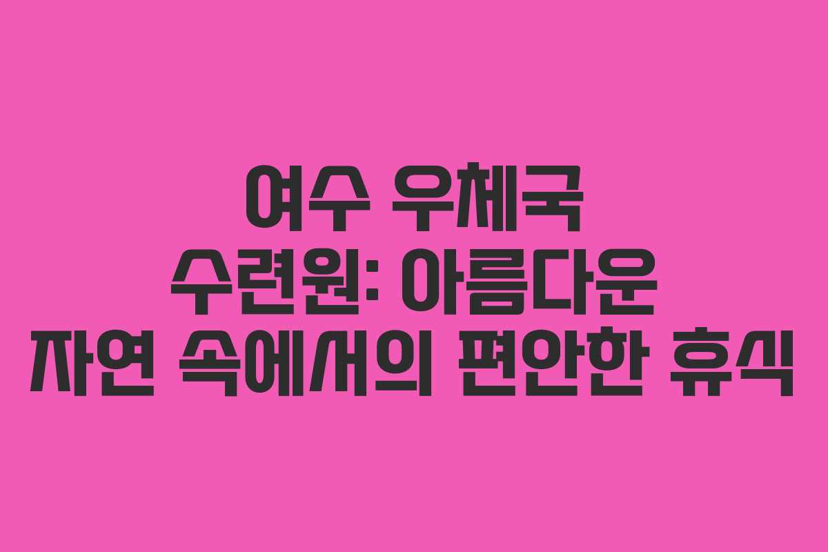 여수 우체국 수련원은 편안한 시설과 아름다운 자연환경을 갖춘 최적의 휴식 공간입니다. 저렴한 가격으로 제공되는 이 수련원은 우체국 직원 및 가족들에게 잊지 못할 추억을 선사합니다. 여수의 아름다운 바다와 함께하는 힐링을 원하신다면, 여수 우체국 수련원에서의 시간을 고려해보시는 것이 좋습니다. 더욱 자세한 정보는 여수 우체국 수련원 공식 홈페이지에서 확인해보세요.