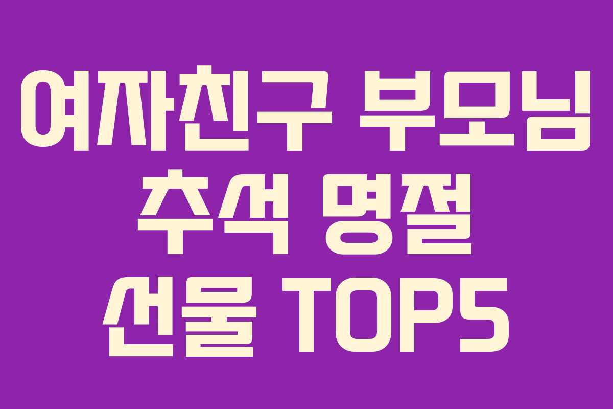 추석 명절이 다가오면 여자친구 부모님께 어떤 선물을 드릴지 고민이 많아지기 마련입니다. 부담스럽지 않으면서도 센스 있는 선물로 감사한 마음을 전할 수 있는 기회를 놓치지 마세요. 이번 글에서는 여자친구 부모님께 추천할 만한 명절 선물 TOP5를 소개하겠습니다.