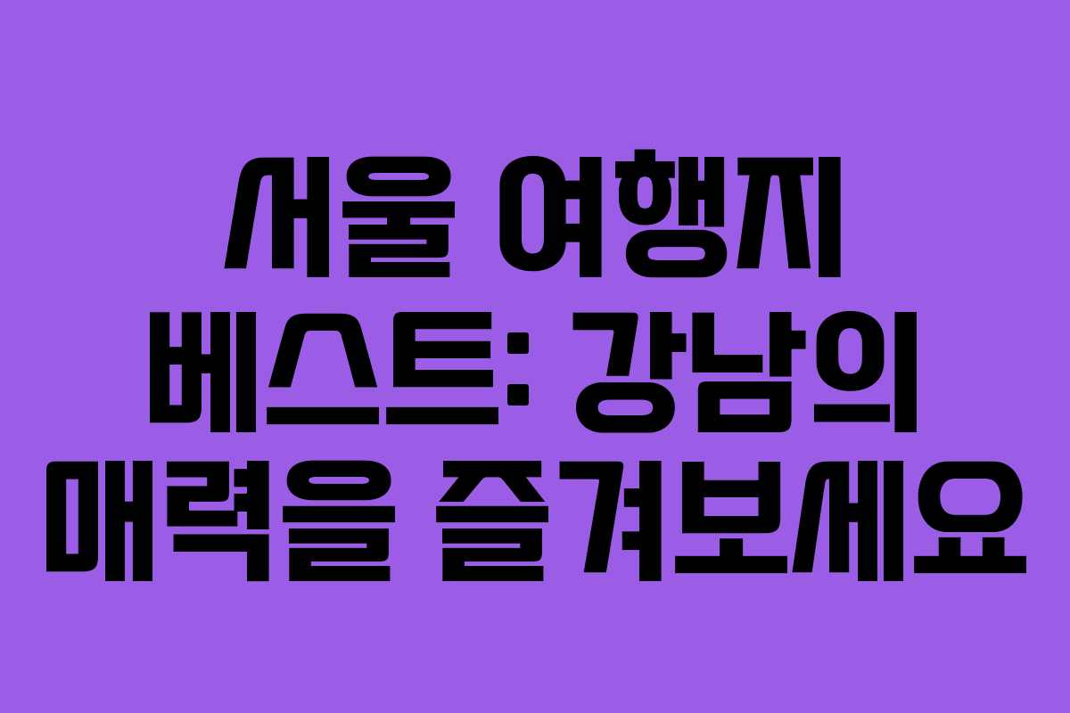 서울은 다양한 명소와 즐길 거리가 가득한 도시입니다. 특히 강남 지역은 현대적이고 세련된 분위기로 많은 관광객들에게 사랑받고 있습니다. 이번 포스트에서는 강남에서 가볼 만한 명소와 추천 코스를 소개하겠습니다.