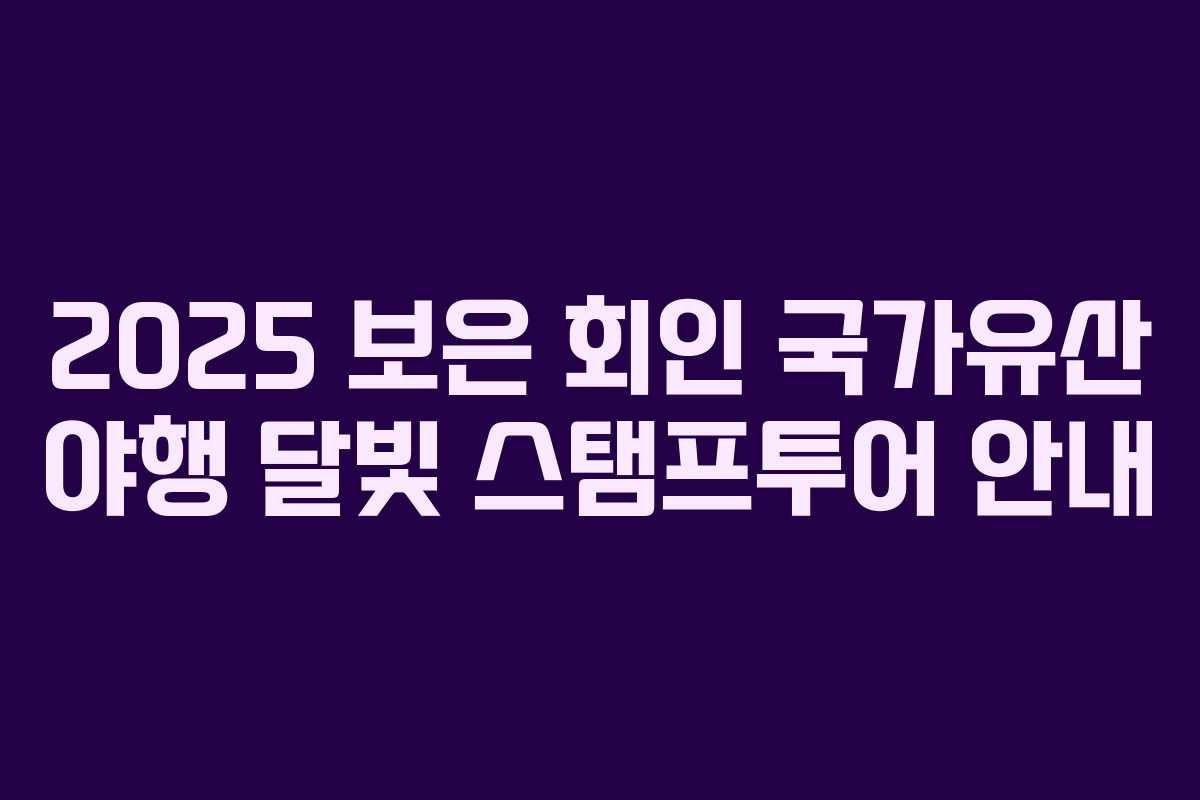 2025년 9월 13일, 보은 회인에서 열리는 국가유산 야행 달빛 스탬프투어에 대한 정보를 소개합니다. 이 투어는 보은의 아름다운 자연과 문화유산을 경험할 수 있는 좋은 기회입니다.