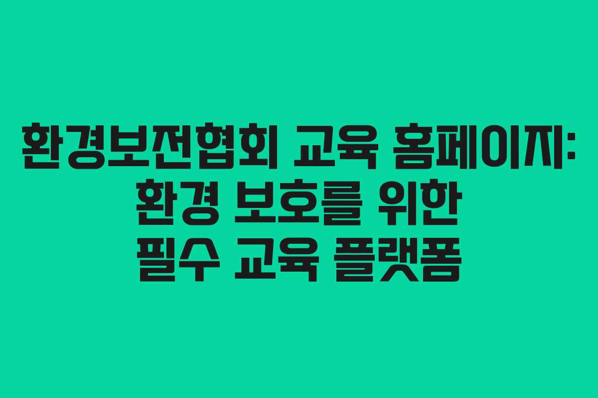 환경 보호는 현대 사회에서 선택이 아닌 필수로 자리잡았습니다. 우리의 미래를 위해 환경 분야에 대한 깊은 이해와 실질적인 노력이 요구되는 시대입니다. 이를 지원하기 위해 환경보전협회 교육 홈페이지는 다양한 교육 프로그램을 통해 전문가 양성을 돕고 있습니다. 이번 포스팅에서는 이 홈페이지의 주요 기능과 제공되는 교육 과정에 대해 살펴보겠습니다.