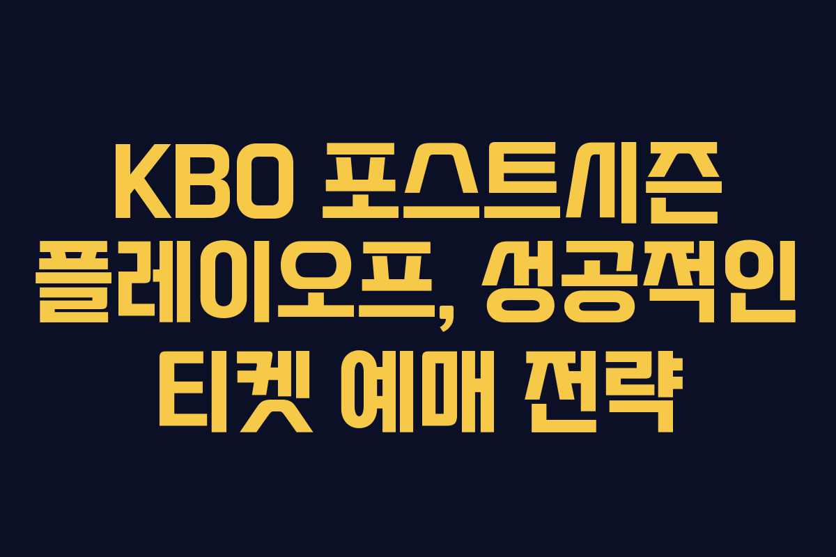 가을 야구의 하이라이트인 KBO 포스트시즌 플레이오프는 많은 야구팬들에게 큰 관심을 받고 있습니다. 짜릿한 순간을 현장에서 즐기기 위해서는 티켓 예매 경쟁이 필수인데, 성공적인 예매를 위한 전략을 알아보겠습니다.