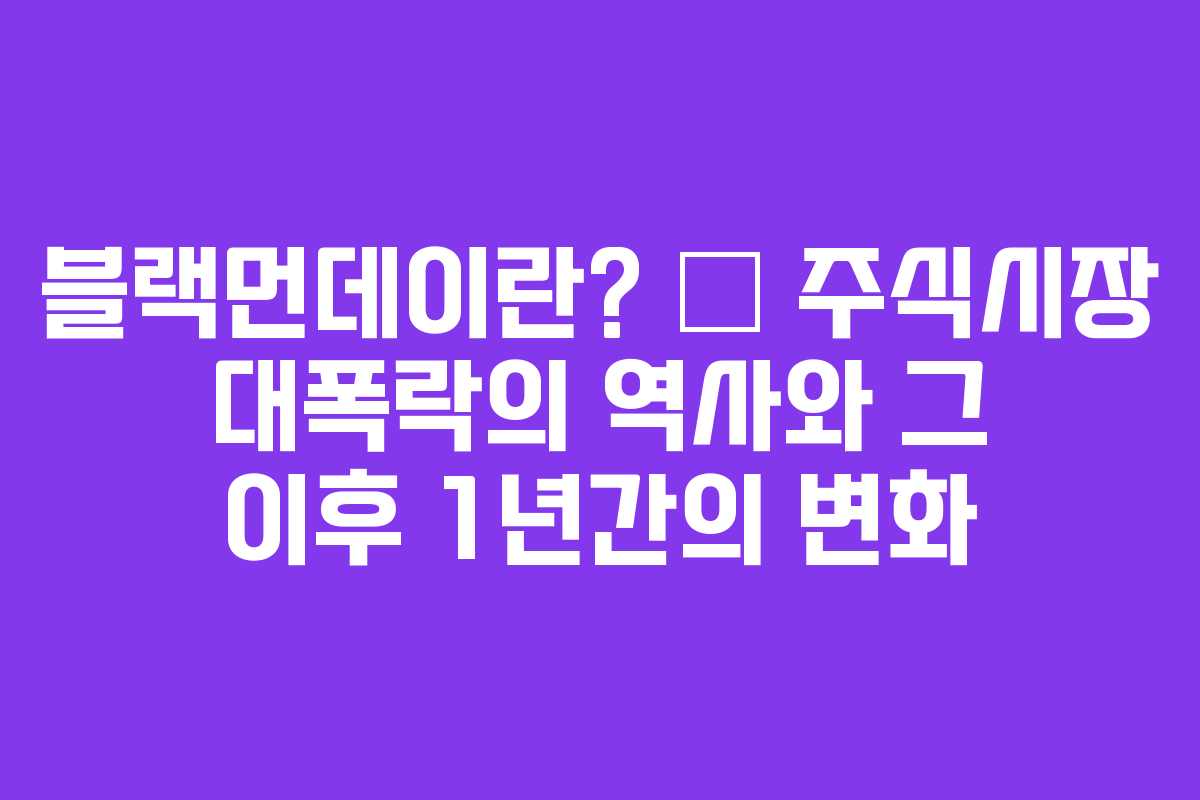 블랙먼데이는 주식시장에서 발생한 심각한 폭락을 의미하며, 특히 1987년 10월 19일에 발생한 사건이 대표적입니다. 이 날, 미국의 다우존스 지수가 하루 만에 22.6% 하락하는 충격적인 상황이 발생했습니다.