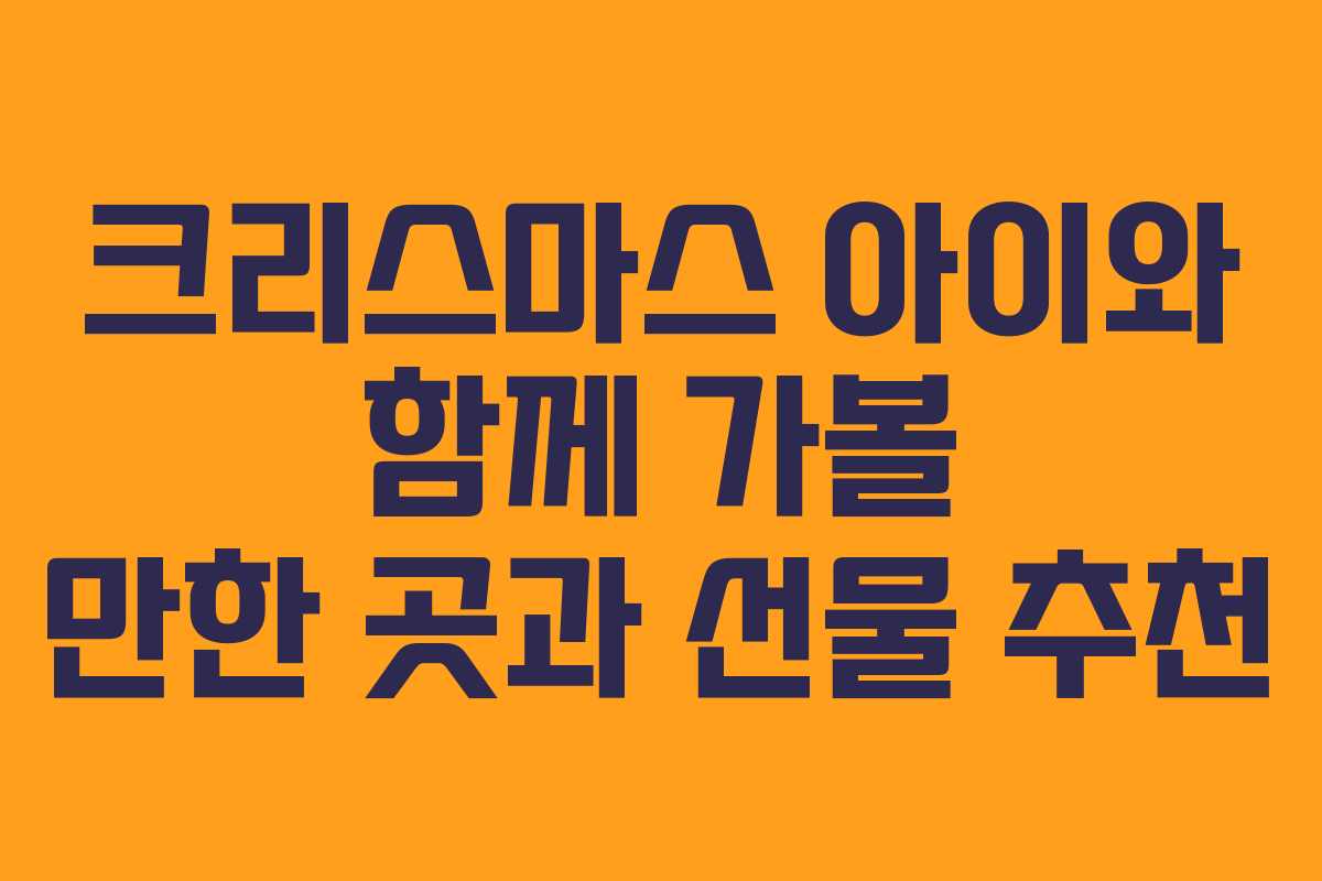 크리스마스는 아이들과 특별한 시간을 보낼 수 있는 소중한 기념일입니다. 아이와 함께 가볼 만한 장소와 선물 아이디어를 소개합니다.
