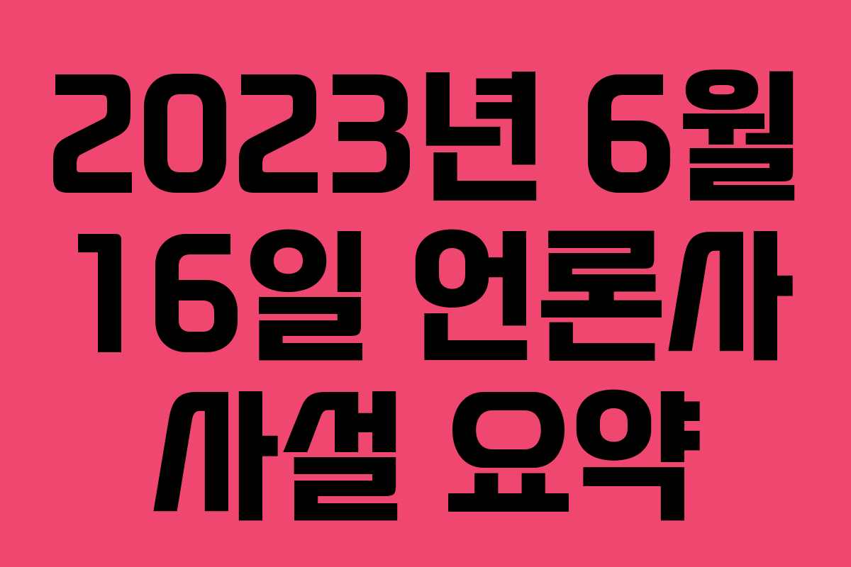 2023년 6월 16일, 여러 언론사에서 발표한 사설들을 정리하여 각 사안에 대한 다양한 의견과 분석을 제공합니다. 이 사설들은 정치, 경제, 사회 등 여러 분야의 현안에 대해 다루고 있습니다.
