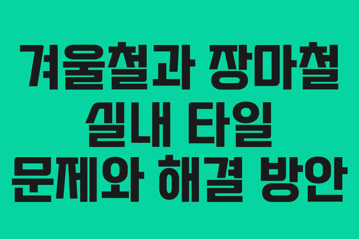 이와 같이 겨울철과 장마철의 타일 문제를 예방하고 해결하기 위한 방법을 통해, 안전하고 쾌적한 실내 환경을 유지할 수 있습니다.