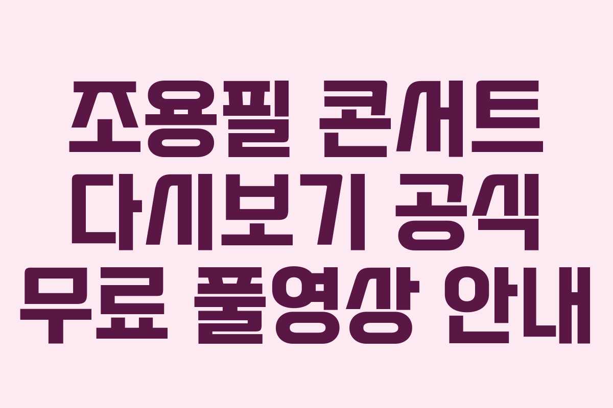 조용필의 50주년 콘서트가 방송 후 많은 관심을 받고 있습니다. 팬들은 다시보기 서비스를 통해 잊지 못할 감동을 다시 느끼고 싶어 합니다. 이번 포스팅에서는 조용필 콘서트 다시보기의 경로와 방법을 안내하겠습니다.
