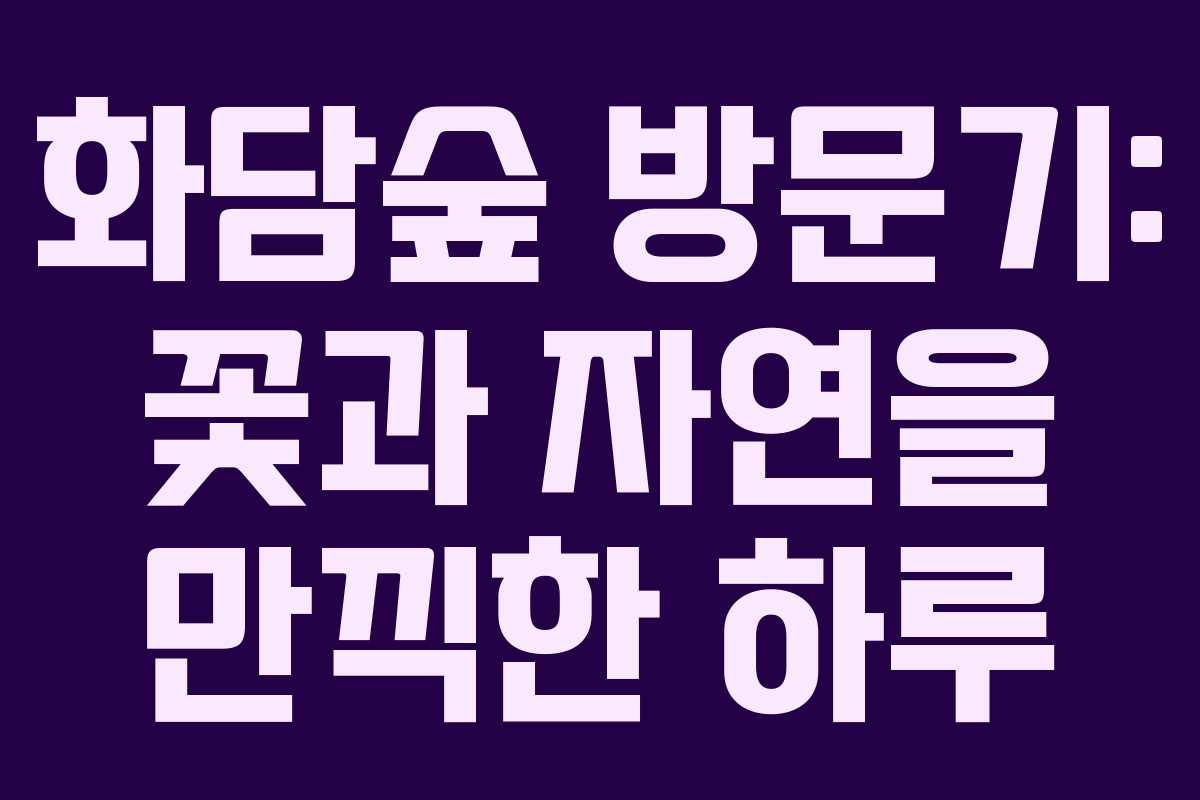 화담숲은 자연과 꽃이 어우러진 아름다운 공간으로, 방문 전 예약이 필요합니다. 예약 방법과 팁을 통해 더욱 즐거운 방문을 준비해보세요.