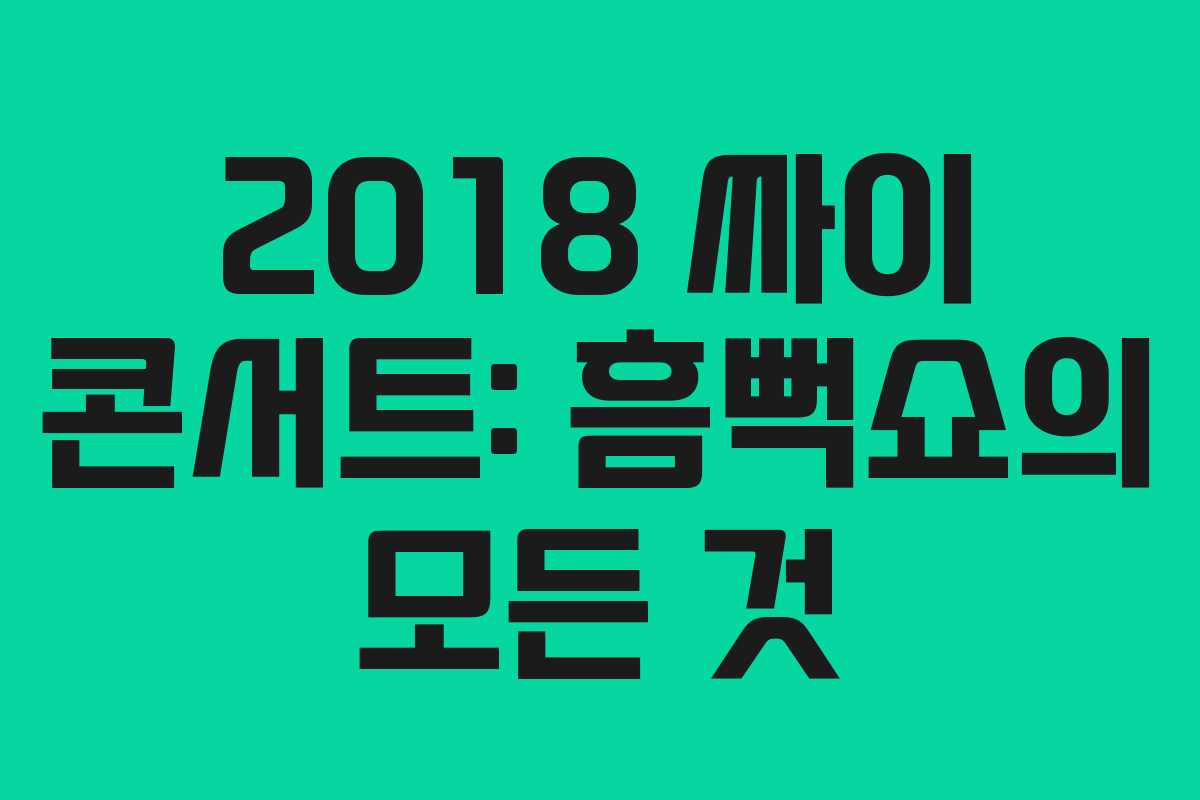 2018 싸이 콘서트는 많은 이들에게 잊지 못할 추억을 선사했으며, 다음 공연을 기대하게 만드는 특별한 경험이었습니다.