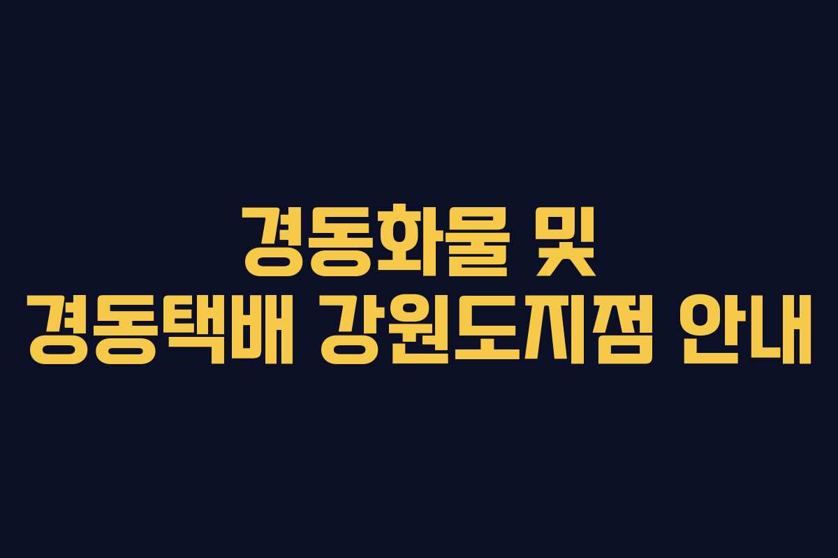 경동화물과 경동택배는 강원도 지역에서도 편리한 택배 서비스를 제공하고 있습니다. 이 글에서는 강원도 내 경동택배 지점의 전화번호 및 위치, 택배 발송 방법과 배송 조회 방법에 대해 자세히 안내드리겠습니다.