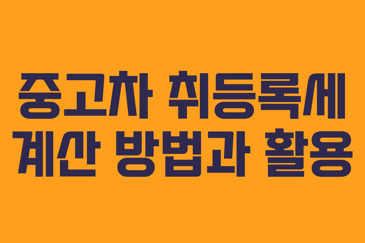 중고차를 구입할 때 발생하는 취등록세는 자동차 명의 이전 과정에서 꼭 알아야 하는 중요한 세금입니다. 이번 글에서는 중고차 취등록세의 개념과 계산 방법, 그리고 계산기를 이용한 방법에 대해 자세히 설명하겠습니다.