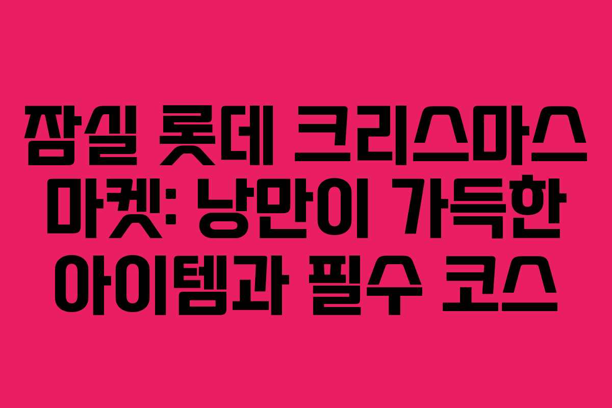 2023년 크리스마스 시즌을 맞아 잠실 롯데에서 열린 크리스마스 마켓은 아기자기한 소품과 다양한 먹거리를 제공하여 방문객들에게 특별한 경험을 선사합니다. 이곳은 연말의 낭만적인 분위기를 만끽할 수 있는 완벽한 장소입니다.