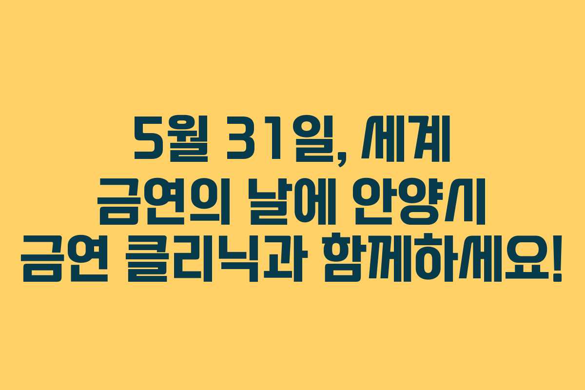 5월 31일은 세계 금연의 날로, 흡연의 위험성을 인식하고 금연을 촉진하는 기회를 제공합니다. 많은 사람들이 금연을 결심하지만, 혼자서는 어려움을 겪는 경우가 많습니다. 이럴 때, 안양시 보건소의 금연 클리닉이 도움을 줄 수 있습니다.