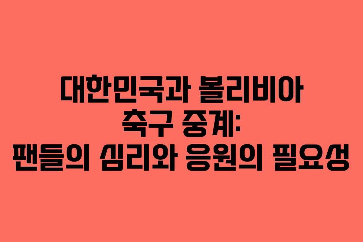 볼리비아와의 경기는 한국 팀의 전술을 실험하고, 다양한 플레이 스타일을 경험할 수 있는 좋은 기회입니다.