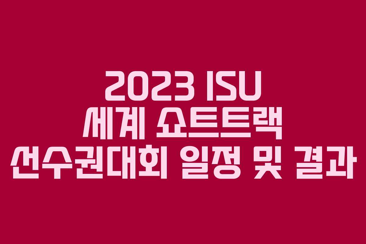 2023년 ISU 세계 쇼트트랙 선수권대회가 서울에서 개최되며, 이번 대회는 7년 만에 열리는 의미 있는 행사입니다. 이 대회는 시즌을 마무리하는 자리로, 한국은 남녀 선수들이 모든 종목에 출전하게 됩니다. 본 글에서는 대회 일정과 주요 경기 결과, 세계랭킹에 대해 살펴보겠습니다.