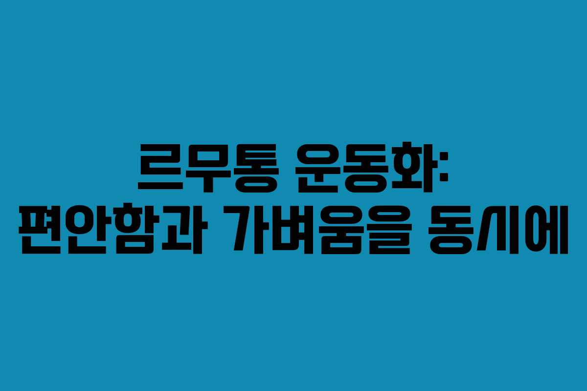 르무통 운동화는 편안한 착용감과 가벼운 무게로 많은 사람들에게 사랑받고 있는 브랜드입니다. 이번 글에서는 르무통의 특징, 제품 종류, 추천 대상, 사용자 후기, 구매 시 참고 사항 등을 자세히 알아보겠습니다.