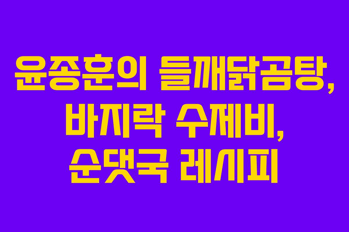 윤종훈 셰프의 다양한 요리 레시피를 소개합니다. 들깨닭곰탕, 바지락 수제비, 순댓국 등 각각의 개성 있는 요리를 쉽게 따라할 수 있도록 요리 재료와 만드는 법을 정리했습니다.