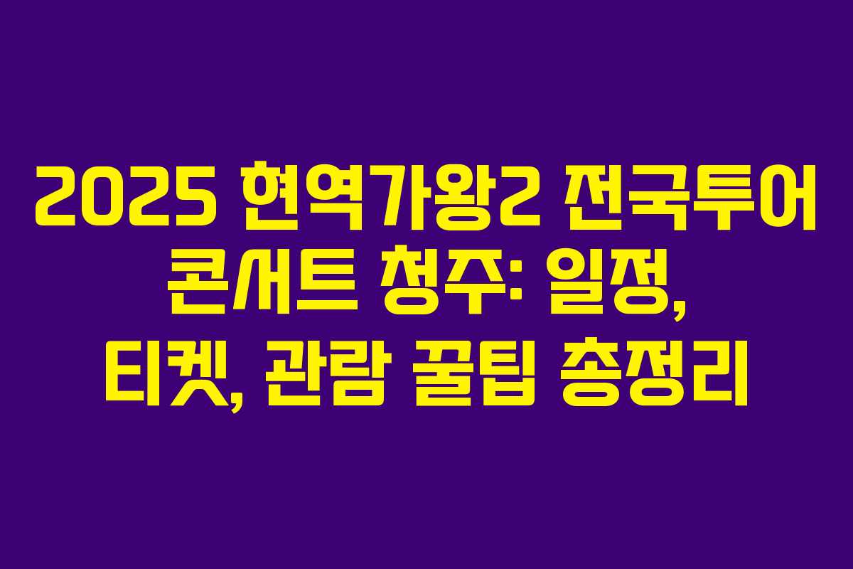 2025년 8월, 청주대학교 석우문화체육관에서 열리는 현역가왕2 전국투어 콘서트 청주 공연에 대한 정보를 종합했습니다. 이 글에서는 공연 일정, 티켓 예매 방법, 좌석 배치도, 관람 꿀팁 등 팬들이 꼭 알아야 할 내용들을 정리했습니다.