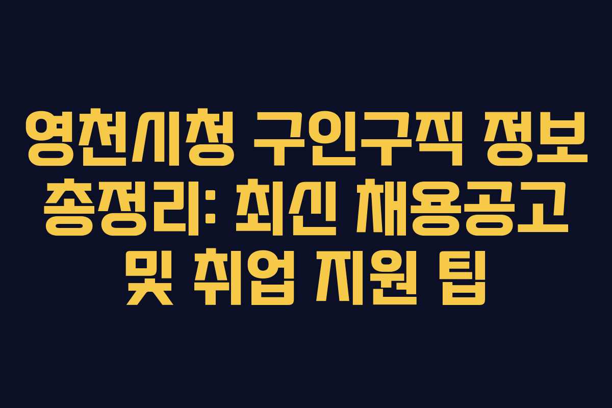 영천시에서 구직을 희망하는 분들을 위해 반드시 알아야 할 정보들을 정리했습니다. 이 글에서는 영천시청의 채용 공고와 공공 및 민간 부문의 구인 정보, 그리고 취업 지원 팁까지 상세히 안내드립니다.