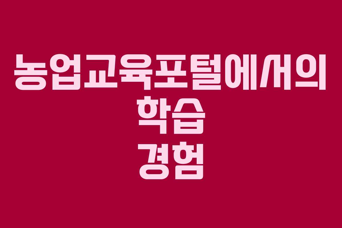 농업교육포털은 농업에 대한 다양한 교육 과정을 제공하는 플랫폼으로, 매일 저녁 일정 시간을 할애하여 수업을 듣는 것은 매우 유익한 경험입니다. 이 포털은 농업 관련 지식을 쌓고 싶은 분들에게 매우 적합한 곳입니다.