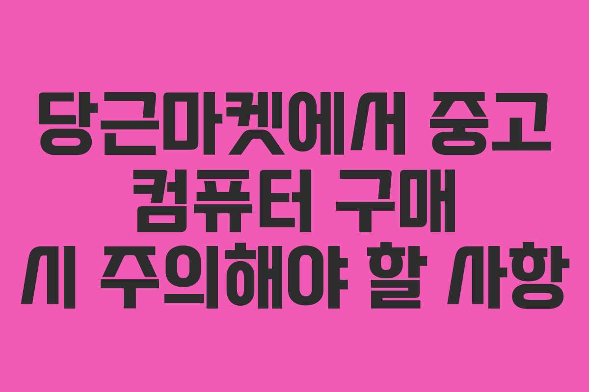 중고 컴퓨터를 구매하는 것은 비용 절감에 도움이 될 수 있지만, 주의사항을 숙지하지 않으면 후회할 수 있습니다. 다음은 당근마켓에서 중고 컴퓨터를 구매할 때 고려해야 할 점들입니다.