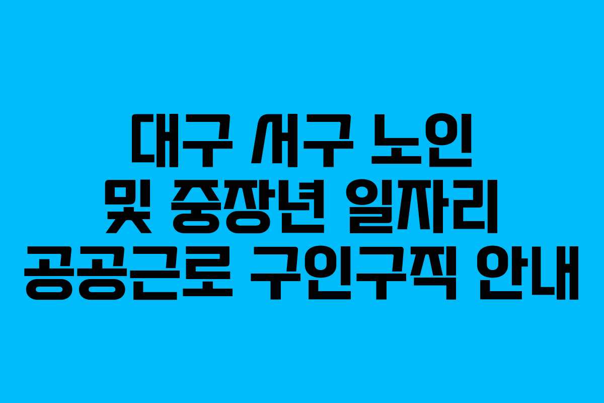 대구 서구에서는 노인과 중장년층을 위한 다양한 일자리를 제공하고 있습니다. 이번 포스팅에서는 대구 서구청 홈페이지에서 제공하는 공공근로 채용정보를 중심으로, 알바와 복지관, 시니어클럽에 대한 내용을 쉽고 자세히 설명하겠습니다.