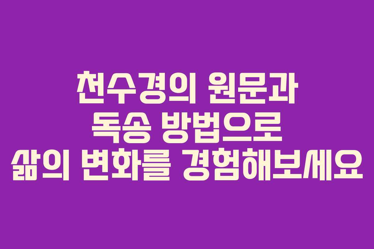 천수경의 원문과 독송 방법으로 삶의 변화를 경험해보세요