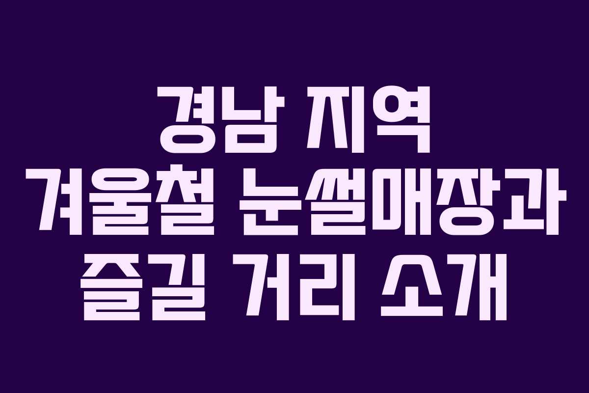 겨울철 눈이 드물게 내리는 경남 지역에서도 가족과 함께 즐길 수 있는 다양한 눈썰매장이 존재합니다. 이번 겨울방학에는 아이들과 함께 신나는 시간을 보낼 수 있는 눈썰매장들을 소개합니다. 각 장소의 운영 기간과 요금, 시설 등을 꼼꼼히 살펴보며 즐거운 겨울을 준비해 보세요.