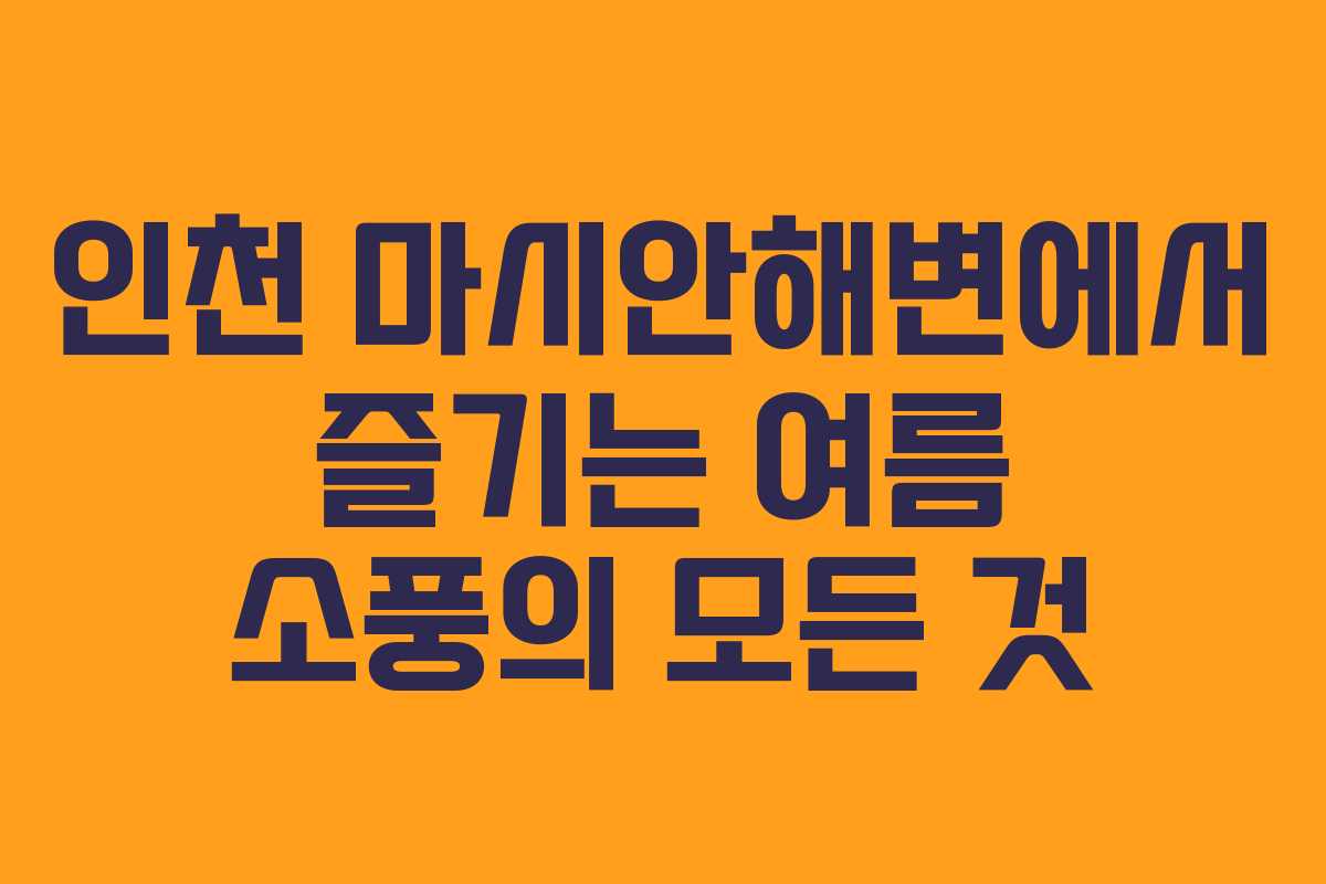 여름이 되면 가족과 함께 바다로 떠나는 소풍은 특별한 추억을 제공합니다. 인천의 마시안해변은 물놀이와 갯벌체험을 즐길 수 있는 최적의 장소로 알려져 있습니다. 이번 포스팅에서는 마시안해변에서의 체험을 통해 어떤 즐거움을 느낄 수 있는지 소개하고자 합니다.