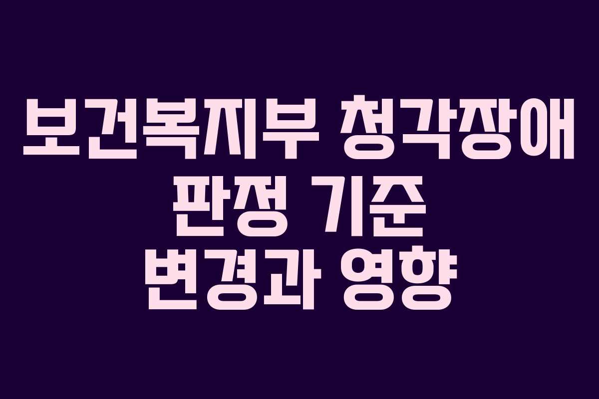 보건복지부에서 시행하는 청각장애 판정 기준은 일반 시민에게 큰 영향을 미치는 사항이다. 2010년부터 시행된 새로운 기준은 청각장애 판정에 있어 기존 방식과 큰 차이를 보인다. 청각장애 판별을 위한 정확한 정보를 이해하는 것은 개인의 권리와 더불어 사회적 지원을 받는 데 매우 중요하다.
