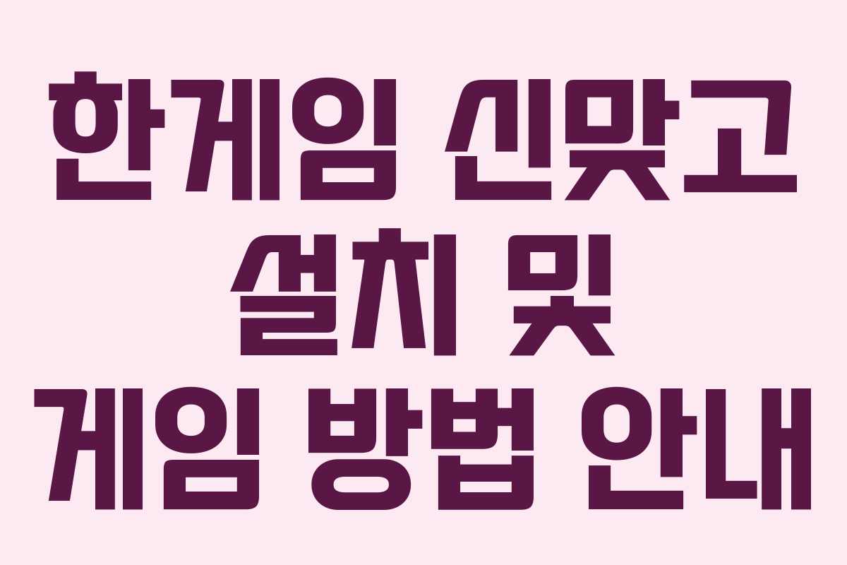 한게임 신맞고를 설치하고 플레이하기 위한 기본적인 절차는 다음과 같습니다.