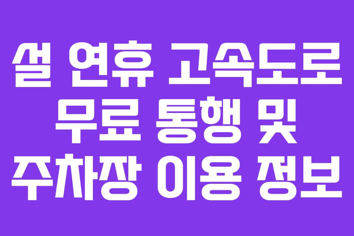 설 연휴 고속도로 통행료는 2025년 1월 27일부터 1월 30일까지 무료로 제공됩니다.