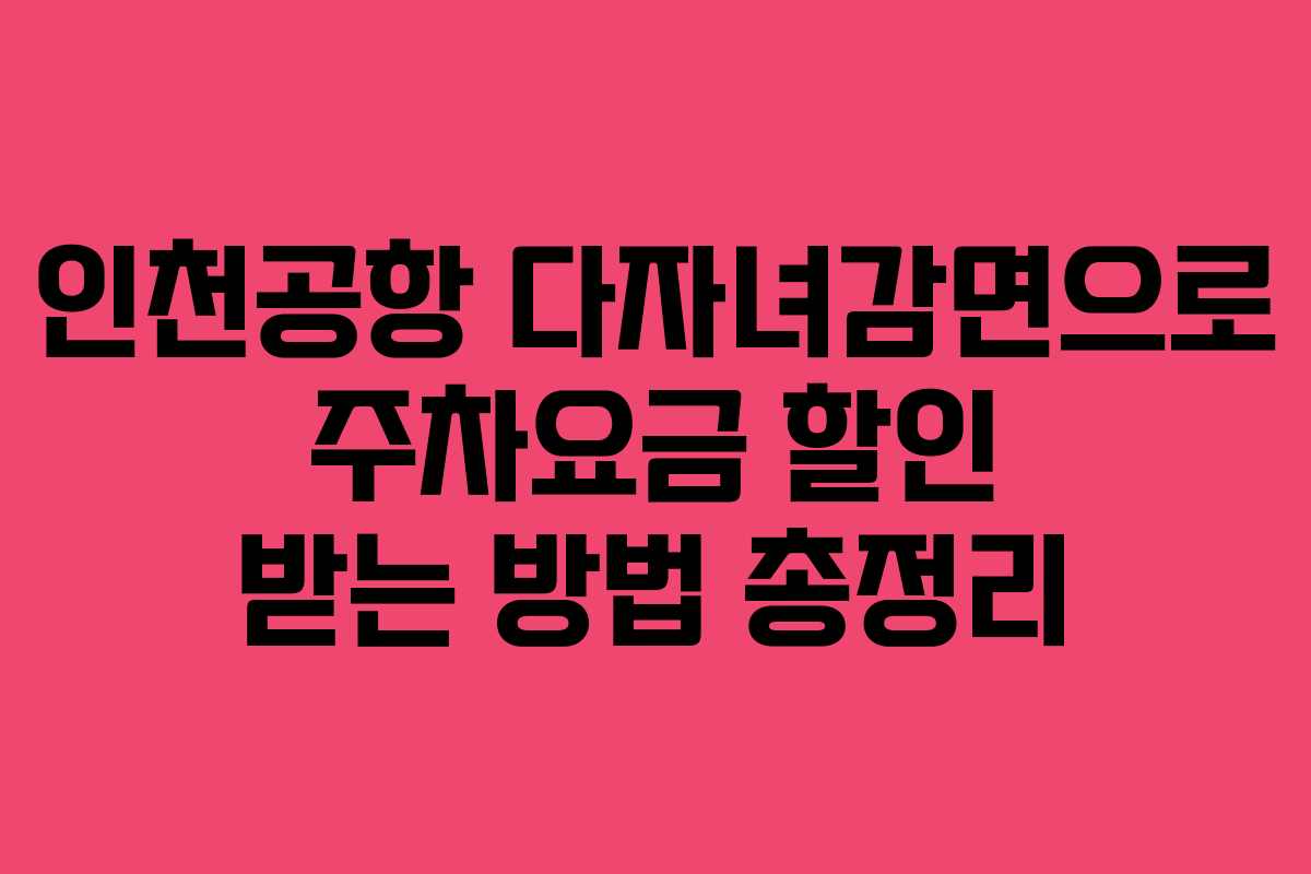 인천공항을 이용하는 다자녀 가구가 주차요금을 절감할 수 있는 방법이 있습니다. 바로 인천공항에서 제공하는 다자녀감면 혜택입니다. 이는 두 자녀 이상을 둔 가구를 대상으로 하며, 주차요금을 50% 할인받을 수 있는 기회를 제공합니다. 하지만 이 혜택을 받기 위해서는 사전신청이 필수적이며, 필요한 서류를 준비해야 합니다. 따라서 신청 방법과 유의사항을 꼼꼼히 확인하는 것이 중요합니다.
