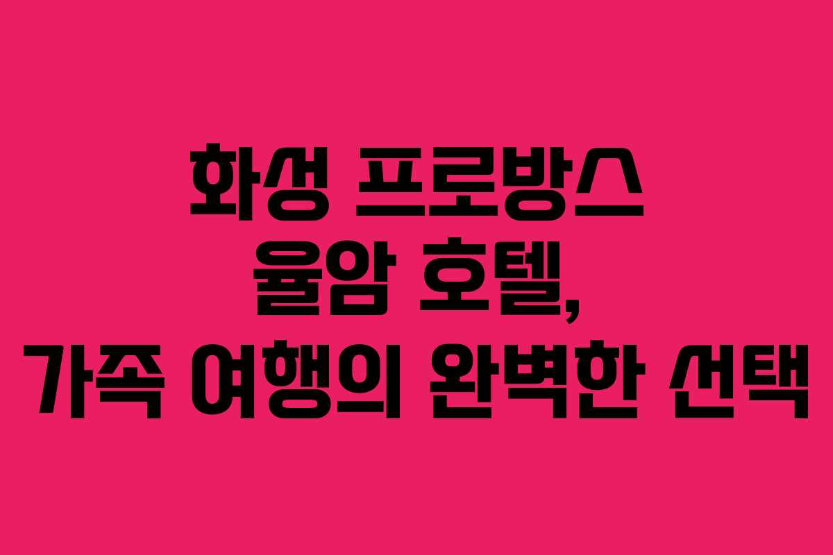 화성 프로방스 율암 호텔은 가족 여행객에게 최적화된 3성급 숙소로, 다양한 부대시설과 청결한 환경이 매력적이다. 아이와 함께하는 여행에서 편안함과 즐거움을 동시에 누릴 수 있는 완벽한 공간이다. 이번 가이드에서는 이 호텔의 숨겨진 매력을 자세히 살펴보도록 하겠다.