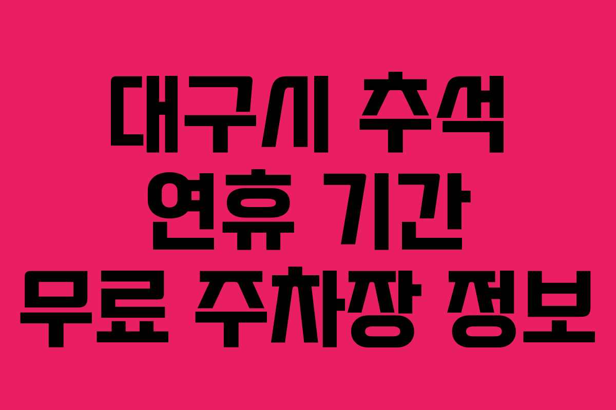 이제 대구시에서 제공하는 무료 주차장을 이용할 준비가 되셨습니다. 귀향길에 안전하고 편리하게 주차장을 활용하여 즐거운 추석 연휴를 보내시기 바랍니다.