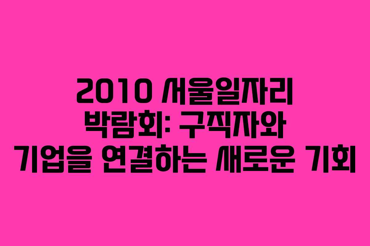 2010 서울일자리 박람회는 구직자와 기업 모두에게 유익한 기회를 제공하는 행사로, 참여자들은 많은 정보를 얻고 소중한 인맥을 형성할 수 있다. 이 박람회에 참여하여 원하는 정보를 얻고 취업의 길을 열어보는 것이 중요하다.