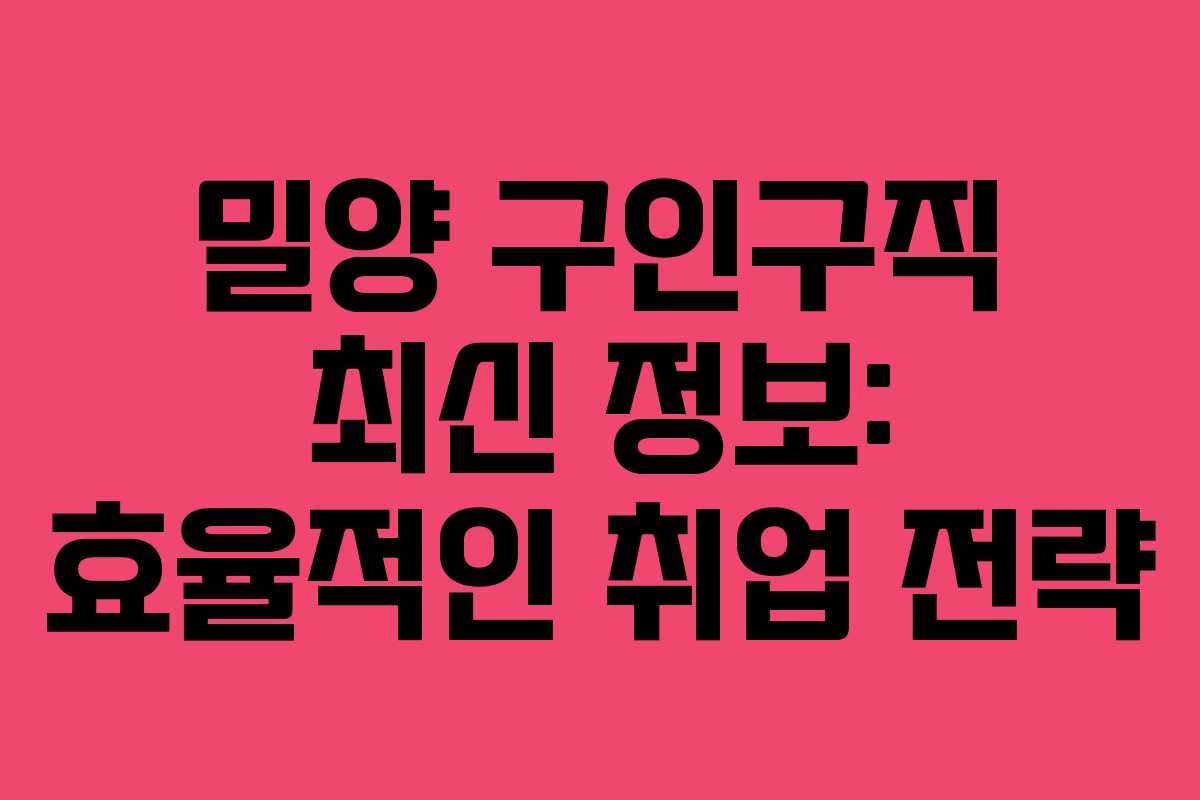 밀양의 구인구직 정보는 어디에서 확인할 수 있나요