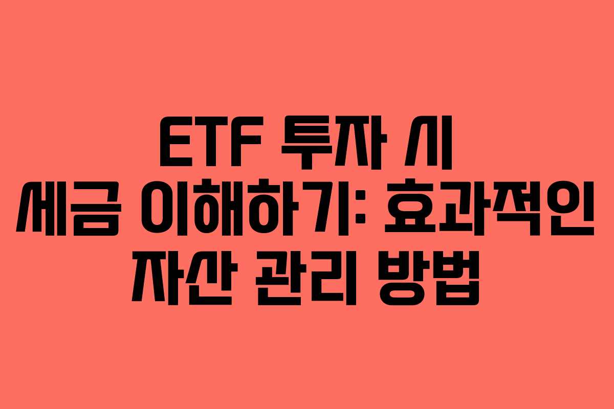 | ETF 투자 후 세금 계획 수립 | 세금 과다 지불 | 투자 전 세금 구조 분석 |